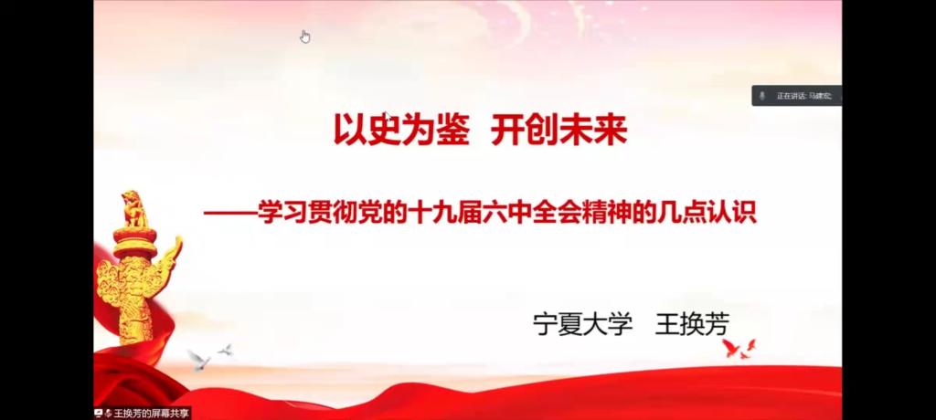 “我们是靠总结经验吃饭的”。王换芳带大家回顾了十九大以来党的历次中央全会和三次历史决议,并且将十九届六中全会与同样于重要时间节点召开的六届七中全会、十一届六中全会进行纵向对比,强调了回顾历史、总结经验的重要性。因此,值中国共产党成立100周年、全面建成小康社会、“两个一百年”奋斗目标历史交汇点,十九届六中全会的召开正当其时、十分必要。