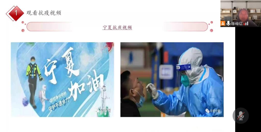 本次会议在观看宁夏抗疫视频中展开。生命重于泰山,疫情就是命令,防控就是责任,危难时刻不忘初心使命,急难险重显党员本色,视频中政府正确部署、志愿者忘我奉献、人民群众团结一心的一幕幕场景令人动容。