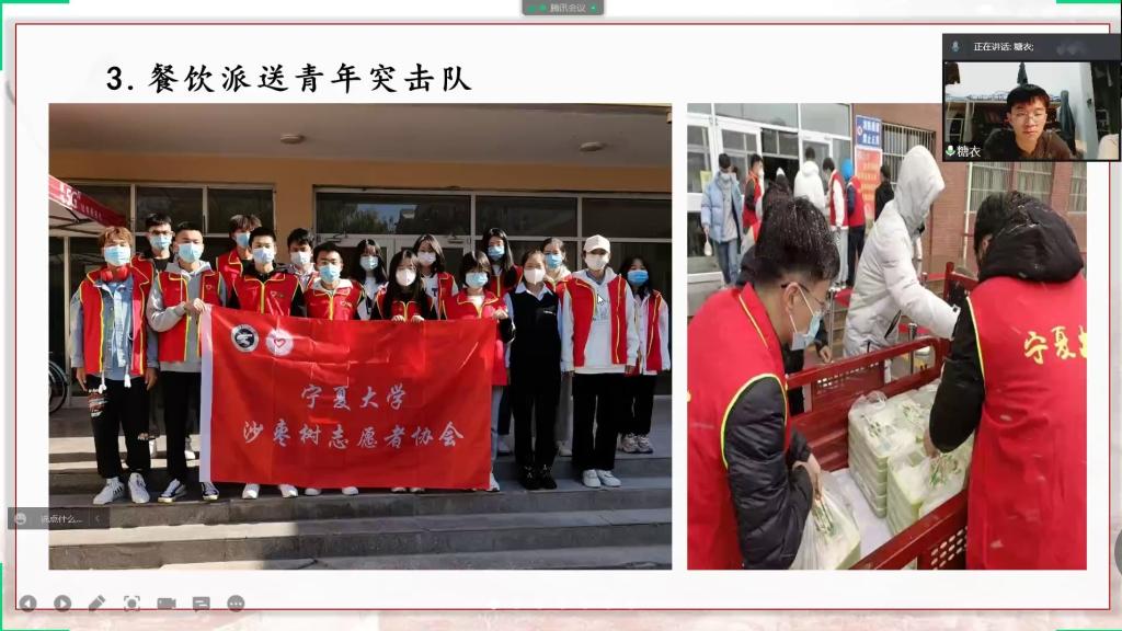 沙枣树志愿者协会工作人员的王龙讲述了自己在疫情来临之际,作为一名志愿者的抗疫故事。他的讲述饱含深情,字里行间让大家感受到了疫情面前志愿者们的无私奉献与付出。