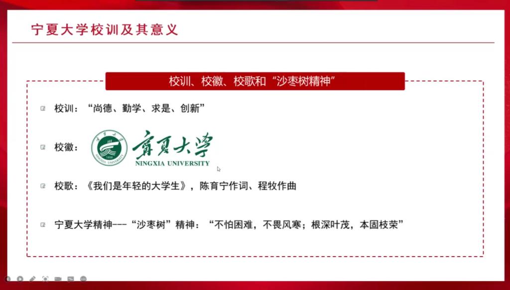 校训、校训背后的价值观及内涵,同时将校训跟党的知识相结合,表示:一名共产党员也需要做到“尚德”“勤学”“求是”“创新”。
