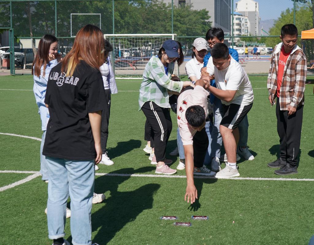 活动伊始,两个党支部的成员进行了抽签组队,所有党员分为八组参加了此次活动。活动包括“你划我猜”、“猴子捞月”、“雕塑模仿”、“匍匐前进”四个游戏。党员们通过“你划我猜”的游戏加深了对党史人物、事件的了解,从“猴子捞月”的游戏中体会了团结协作的好处,在“雕塑模仿”的游戏中感悟了前辈党员们的心路历程及坚定信念,于“匍匐前进”的游戏中一边磨合默契,一边重温党的历史。全体党员在游戏中的相互协作,不仅促进了两个学院党支部成员间的交流,丰富了党支部的活动内容,创新了党支部的活动形式,更进一步加强了成员之间的协作精神,加深了大家对党史语录、党史人物、党史大事件的理解。