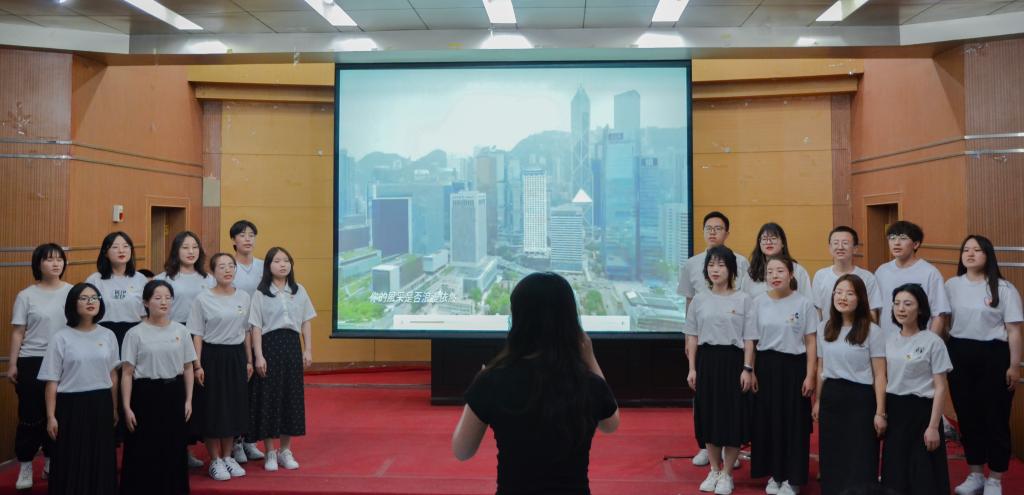 答题结束后,会计学本科生党支部的同学们为大家演唱了大合唱《东方之珠》,他们的歌声悠扬,令人陶醉。随后,流通阅览党支部的老师们为大家带来了诗朗诵《红船精神颂》,他们的朗诵声情并茂,抑扬顿挫,令人热血沸腾。