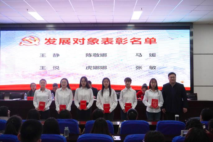 分党校2019年秋季班结业典礼。院党委书记张桓、副书记程胜利、新疆内派教师巴塔、会计学本科生党支部书记王嘉豫、经济学本科生党支部书记何韶华、工商管理本科生党支部书记姚硕及通过本期党课考试的入党发展对象和积极分子到场参会。本次典礼由何韶华主持。