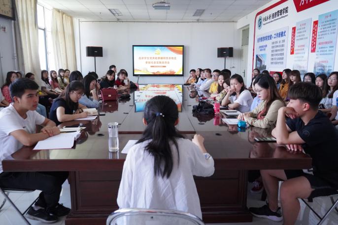 于贺兰山校区文荟楼902会议室召开选派学生党员赴新疆阿克苏地区参加社会实践的动员会。会议由学生工作办公室辅导员、经济学本科生党支部书记何韶华主持,2020届毕业生党员参加会议。