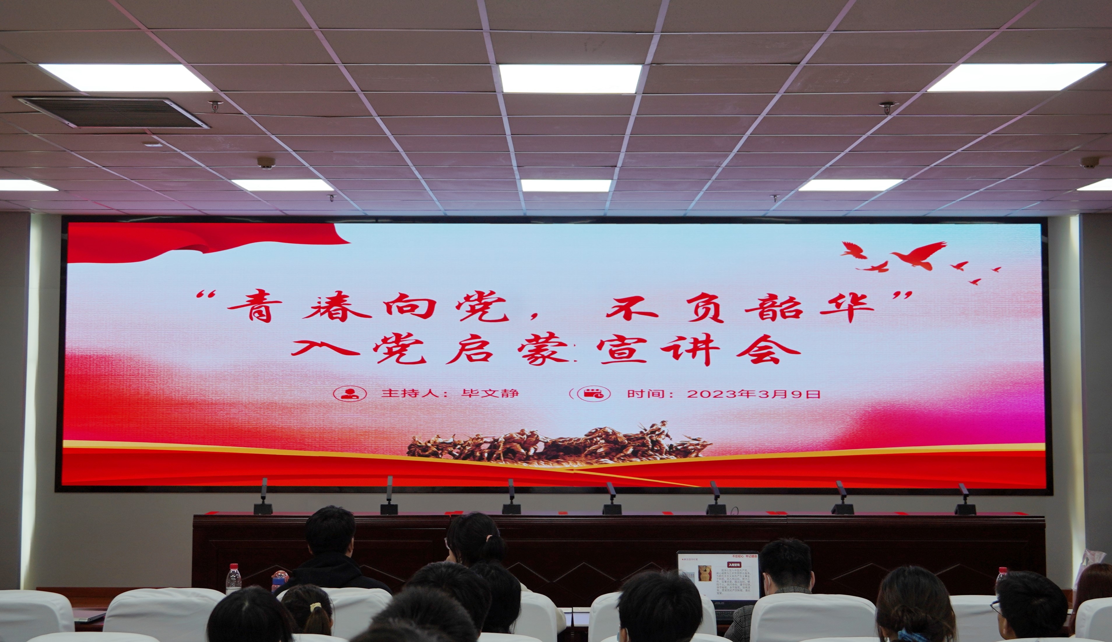 (西部发展研究院)“青春向党,不负韶华”入党启蒙宣讲会于贺兰山校区文荟楼316室顺利举行。经济学本科生党支部、会计学本科生党支部代表,团委组织部代表和2022级全体本科生参加本次会议。本次会议由会计学党支部代表毕文静主持。