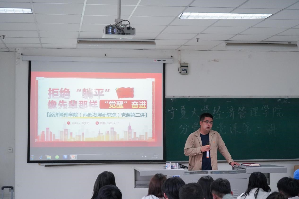 4月17日下午,欧美av (西部发展研究院)分党校党课第二讲于贺兰山校区文荟楼130教室顺利举行。欧美av (西部发展研究院)会计学本科生党支部书记孙文元,第四十一期入党积极分子和第十七期发展对象参加此次党课。本次党课由孙文元主讲。