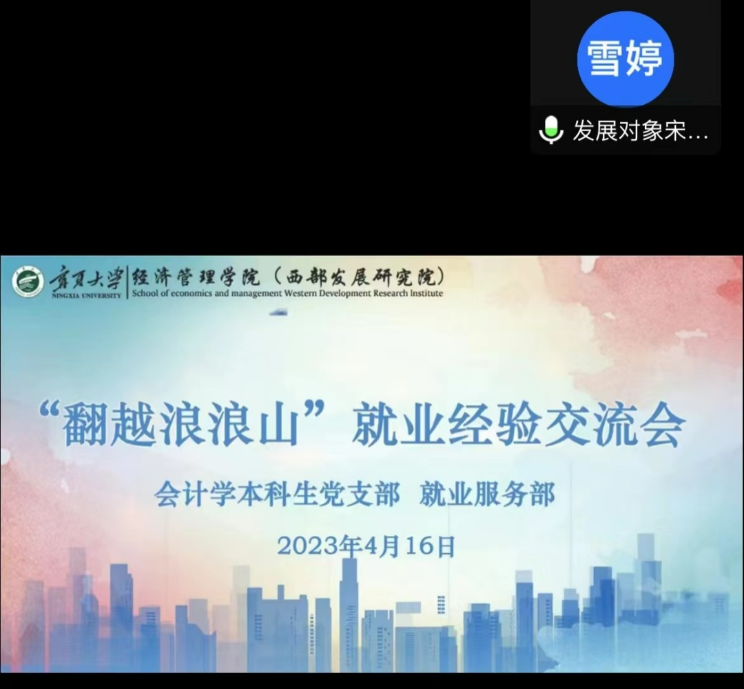 为加强学生与教职工、优秀毕业生的交流与沟通,4月16日晚,欧美av (西部发展研究院)会计学本科生党支部“我为群众办实事”系列活动“翻越浪浪山”就业经验交流会于线上顺利开展。学生工作办公室负责人艾萨·阿尤普,会计学党支部书记孙文元,优秀毕业生2017级蒋曦然、2018级青亚松及会计学本科生党支部全体成员参加会议。会议由宋雪婷主持。