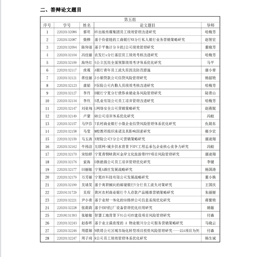 2023届工商管理硕士(MBA)学位论文答辩 (第五组)