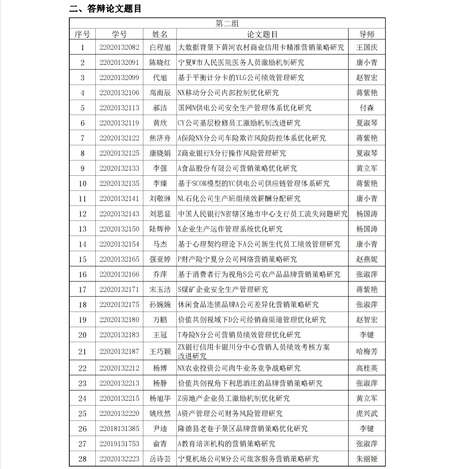 2023届工商管理硕士(MBA)学位论文答辩 (第二组)