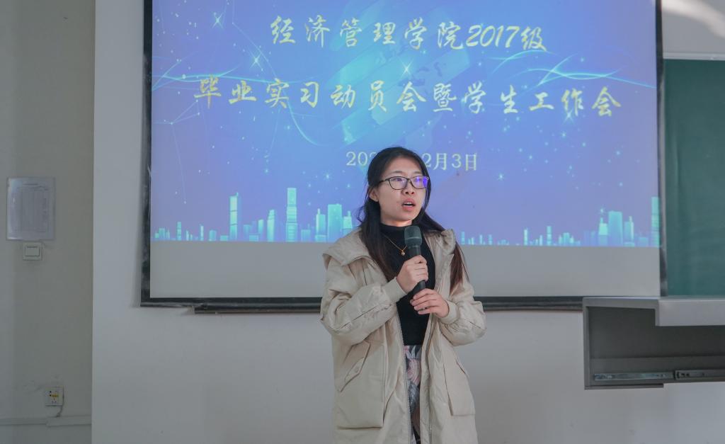毕业生目前的就业情况。学院建立了有关就业消息推送的微信群并已举办了二十九场的面试会议。虽然有部分同学获得了实习岗位,但大部分同学仍处于观望等待的状态。姚硕点出了社会就业形势的严峻性,告诫同学们要抱有积极的就业热情,合理规划好时间,做好多手准备,切忌眼高手低。