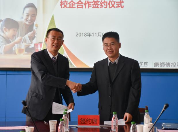 “康师傅控股集团人才培育合作基地”匾牌。授牌仪式伴随着雷鸣般的掌声顺利举行。