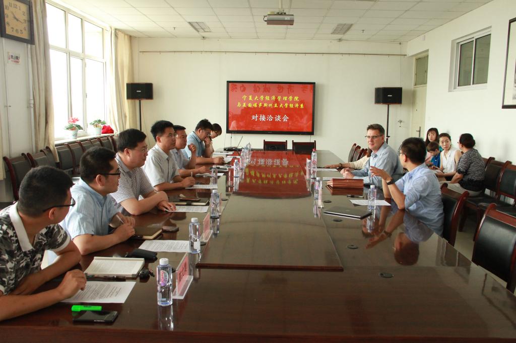 与美国堪萨斯州立大学经济系对接洽谈会”在文科楼会议室举行,出席会议的有美国堪萨斯州立大学经济系Blankenau教授及其妻子Angela,欧美av