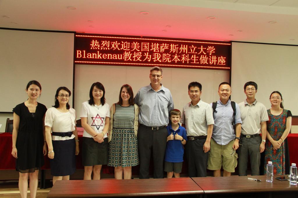 讲座结束后,与会的部分教师与Blankenau教授一家合影留念。