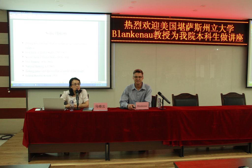 Blankenau教授从美联储(美国联邦储备系统)的历史沿革、基本架构、运作机制、收入情况等几个方面介绍了美联储的基本情况,学生们受益匪浅。