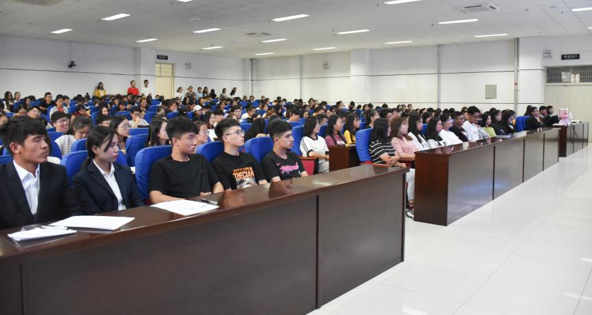于贺兰山校区文荟楼东报告厅召开新学期学生骨干交流会。学院党委副书记程胜利、新疆内派干部巴塔、2016级辅导员何韶华、原2017级辅导员张景、2019级辅导员艾萨、2017级辅导员姚硕以及全体团学成员、党员、宿舍长、2016-2018级各班班委参加会议。学生工作办公室负责人王嘉豫主持会议。