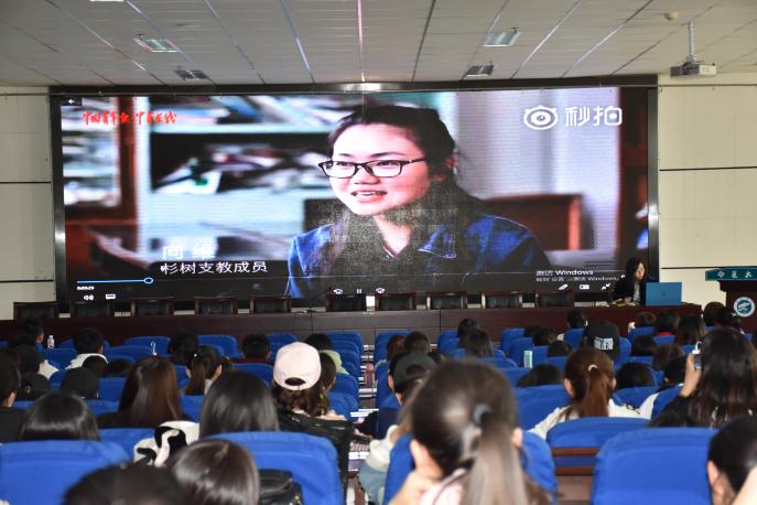 大会伊始,张景向大家介绍了以“助学,筑梦,铸人”为主题的征文活动和以“让梦想点亮芳华”为主题的视频征集活动,希望每位受助学生都能够参与其中。随后,张景汇报了关于受助生志愿活动时长的完成情况,并给同学们分享了明星孙某资助某大学生反被抨击,和受助大学生向维支教回馈社会一反一正两个案例,她希望同学们能够常怀感恩之心,将爱延伸、汇聚善良回报社会。