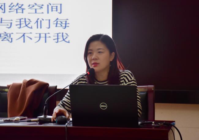 在贺兰山校区文荟楼东报告厅举行了一场别开生面的网络安全知识讲座,2018级学生到场参加。外国语学院学生工作办公室主任余洁担任本次讲座的主讲人。