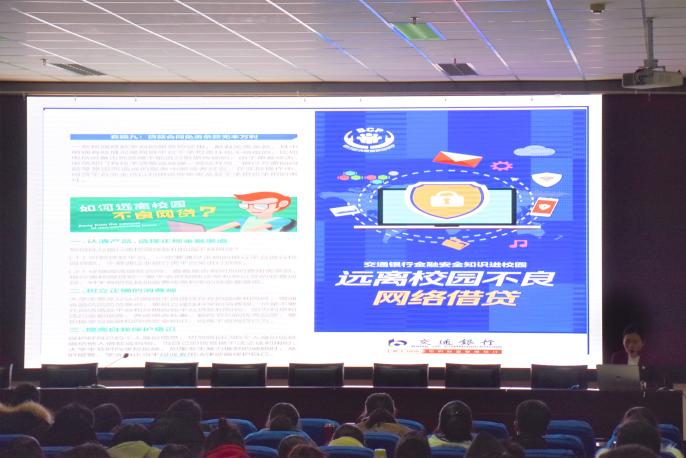 本次讲座以严防电信网络诈骗拉开序幕,胡波以幻灯片的形式向同学们介绍了电信网络诈骗的概念、手段等内容,并引述贴切的案例详细讲解。随后,她带领大家了解了“校园网络借贷”的概念、常用套路以及危害。她指出同学们应树立正确消费观、提高自我保护意识,并强调一定要通过正规的渠道进行借款。为了让同学们更加深刻了解相关的金融知识,她还组织同学们参与了有奖金融知识问与答环节。讲座最后,胡波向同学们推荐了“校园信用卡”,并介绍了其相关的优势。本次讲座在同学们热烈的鼓掌声中圆满落幕。