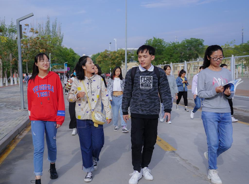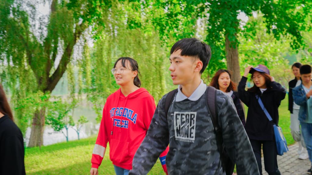 从贺兰山校区出发,一行人一路沿着农学院、音乐学院、美术学院走着,悠扬的练琴声传入耳中,路旁陈设着一系列创意作品,都显示出了校园的活力。绕过德勤楼,他们通过宁大桥进入怀远校区,环绕金波湖在健身跑道上徐徐漫步,晨风微起,碧波荡漾,金波亭周围荷叶铺陈,露珠晶莹剔透。清晨宁静的凌云广场也别有一番风采。同学们谈笑风生,赞叹于眼前的美景。经过图书馆,他们与背着书包匆匆而入的学子们不期而遇,也被欧美av