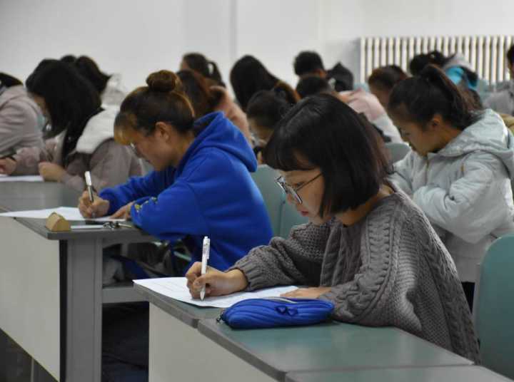 之校史、奖学金的等级设置、学生违纪处分条例及学生安全等均在其中;最后一道论述题考察了新生对今后大学生活的规划,试题既注重考察学生对学生手册知识的掌握情况,又考察了学生的语言组织能力。考试现场井然有序,各个教室均设有两名监考员。同学们仔细思考,认真作答,展现了欧美av