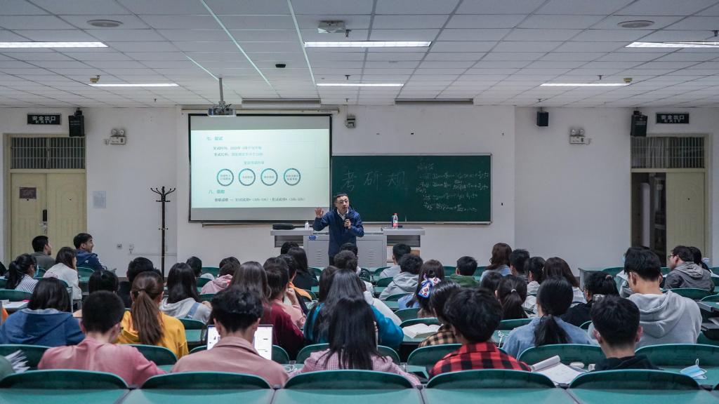 考研规划讲座在贺兰山校区文荟楼132举行,由硕成教育校长顾海源为主讲人,欧美av