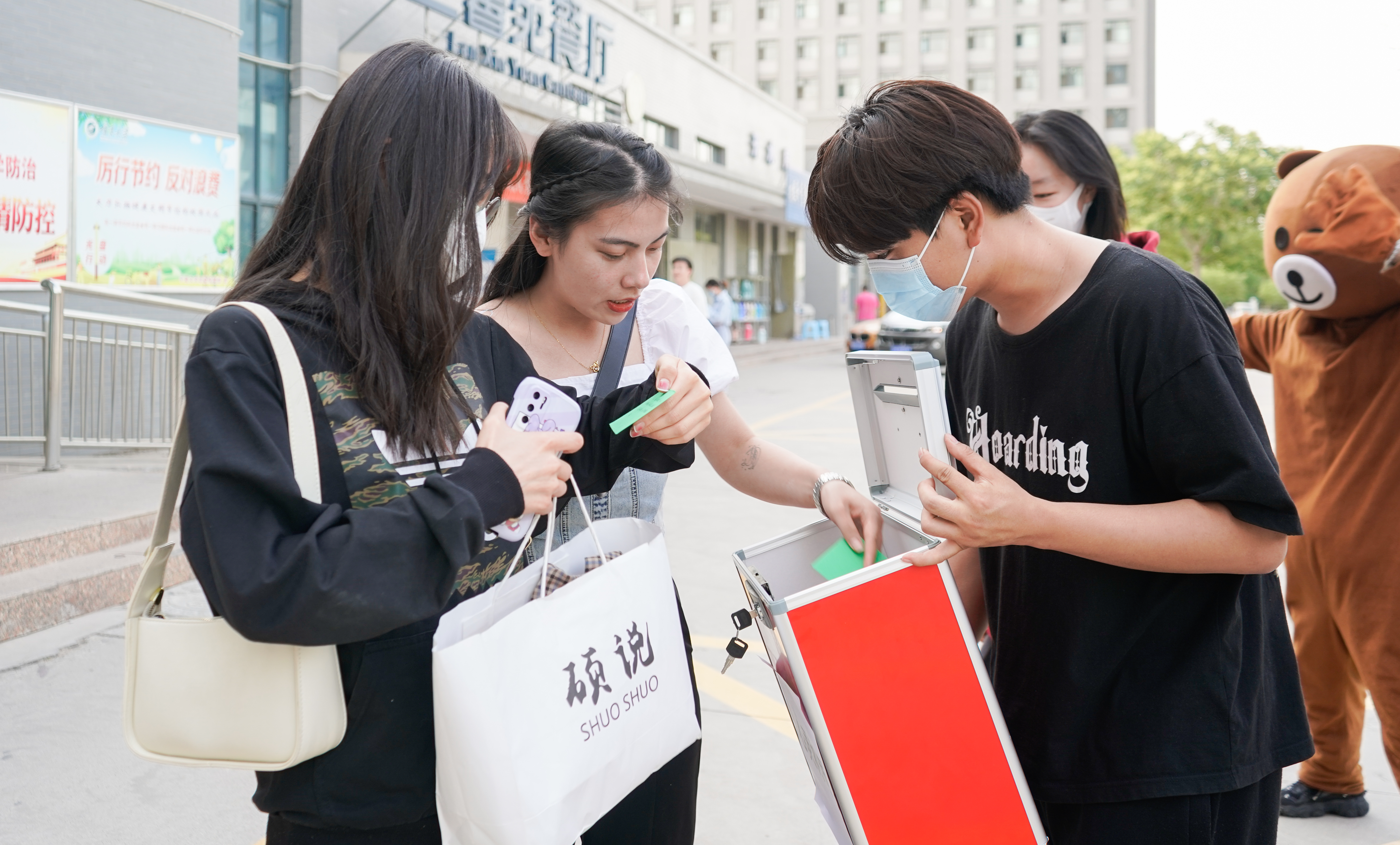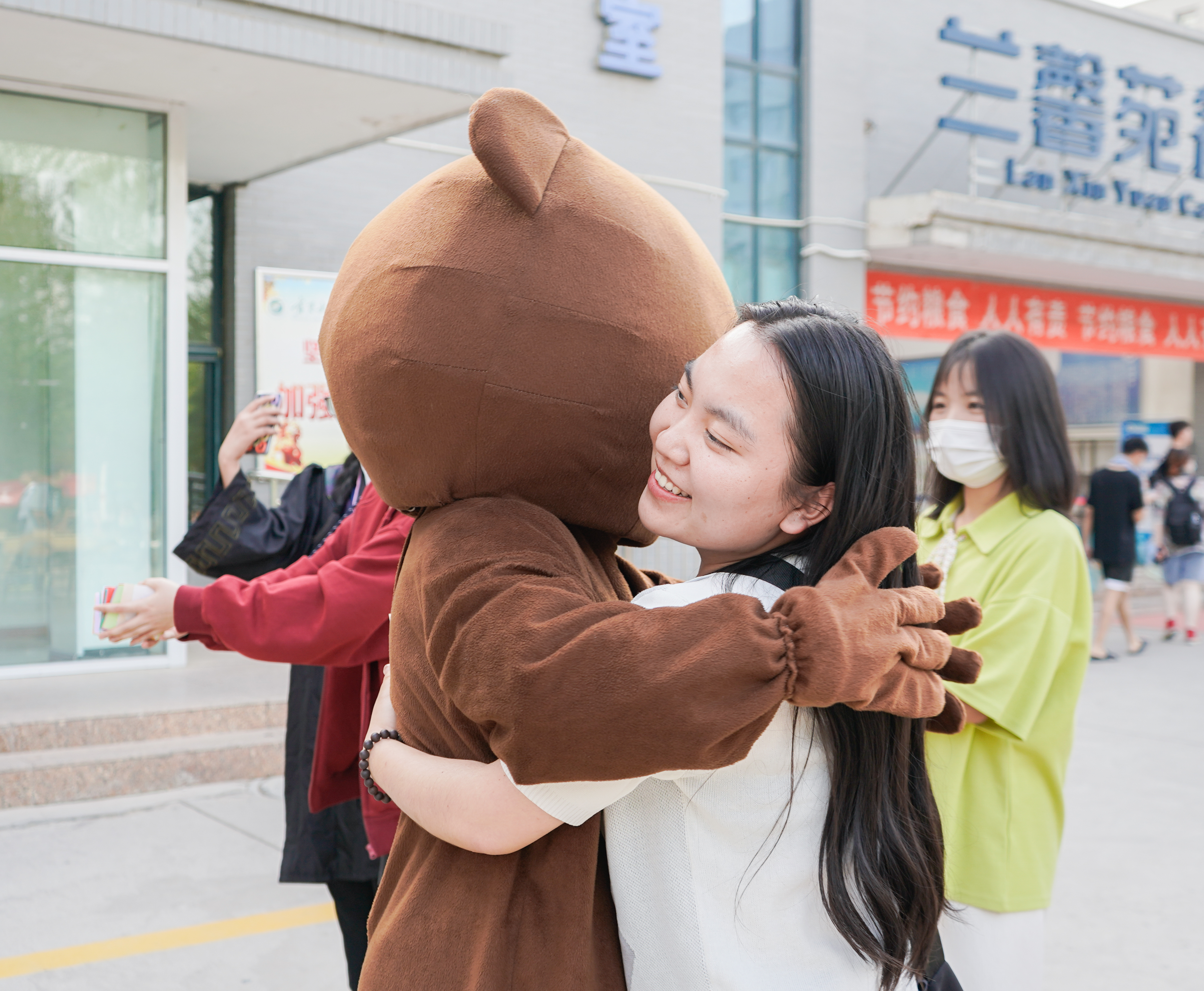 本次活动面向全院学生。活动包含“拥抱玩偶熊”与“抽取祝福卡片”两个环节。活动旨在通过与玩偶熊拥抱的方式,缓解同学们的学习及生活压力,通过随机抽取祝福卡片,收取并传递美好祝愿。