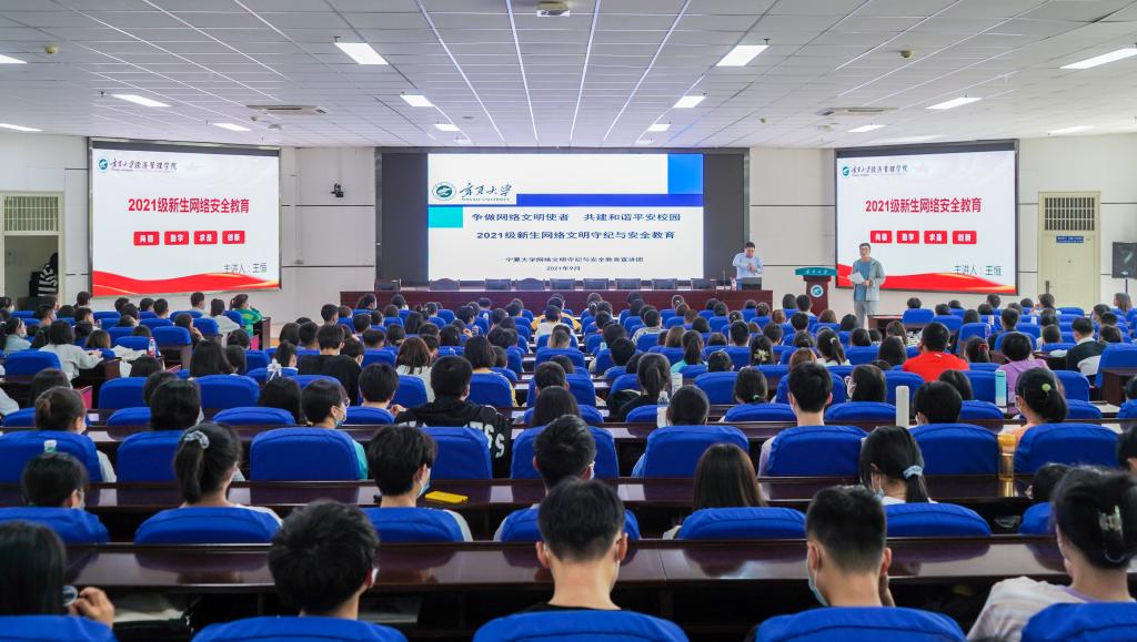 2021级新生网络文明守纪与安全教育”宣讲会于贺兰山校区文荟楼东报告厅举行。2021级全体同学参加本次宣讲会,会议由欧美av