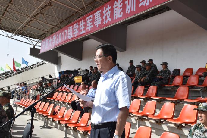宁夏军区战备建设局局长安进瑜大校,武警宁夏总队直属支队支队长张爱斌上校,自治区教育厅党委副书记、副厅长撒承贤,我校校长何建国,校党委副书记、军训领导小组组长王宏伟,校纪委书记周运生,宁夏武警直属第二支队张良中校出席会议。军训团政委罗进德主持会议。