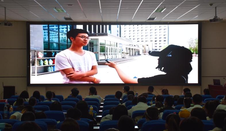 传媒中心主任虎云昀、副主任朱培培、王小燕,文艺部主席胡熙以及其他兄弟部门部长作为嘉宾到场参加。2017级全体学生到场观看。本次闭幕式由谢添、蒋曦然主持。