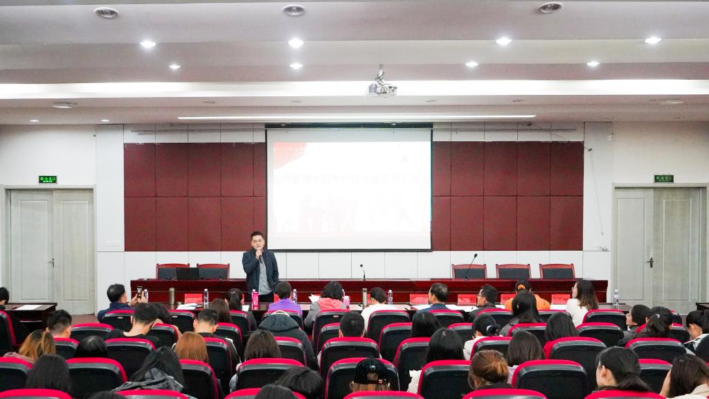 于怀远校区怀远楼二楼学术报告厅举办了2017级专业实习汇报会。学院副院长张逸,教学科研办公室负责人张彩彩、2017级辅导员姚硕,各专业负责人、实习指导老师以及2017级全体本科生参加了此次汇报会。会议由艾鑫担任主持。