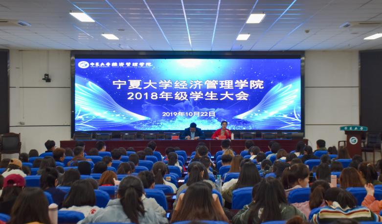 于贺兰山校区文荟楼东报告厅召开2018级年级学生大会。院党委副书记程胜利及2018级全体同学参加会议,学生工作办公室负责人、2018级辅导员王嘉豫主持会议。