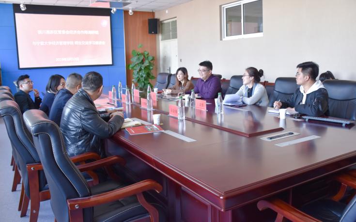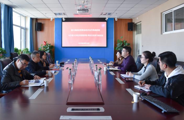 紧接着,双方在轻松幽默的氛围中进行了交流洽谈。在交流过程中,赵明树指出,开发区企业希望能够吸纳更多宁夏高校人才,尤其是专修市场营销的优秀毕业生;同时,他表示联广科技专门设有联广商学院以对企业新纳人才进行培训。认真聆听后,冯蛟提出了几点建议:希望企业不要仅仅局限于招收市场营销专业的学生,应当“宽口径”招募其他专业人才;企业发展过程中也需要多多了解相关职业技术学院,吸取不同层次的优秀人才。此外,赵明树与冯蛟还就人才培训体系、培训派驻团队、员工福利保障和企业投资额度等问题进行了深入探讨。