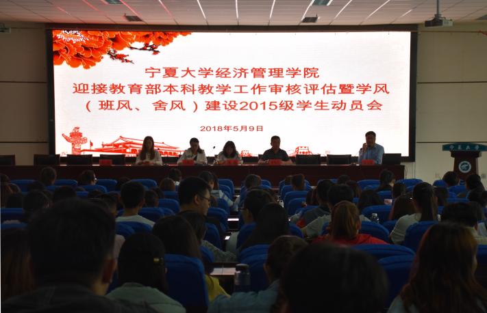 迎接教育部本科教学工作审核评估暨学风(班风、舍风)建设学生动员会”。院党委副书记程胜利、副院长马晓云、教学科研办公室主任张逸、学生工作办公室主任黄旭兴及各年级辅导员出席本次会议。2015、2016、2017级全体同学分别到场参加。