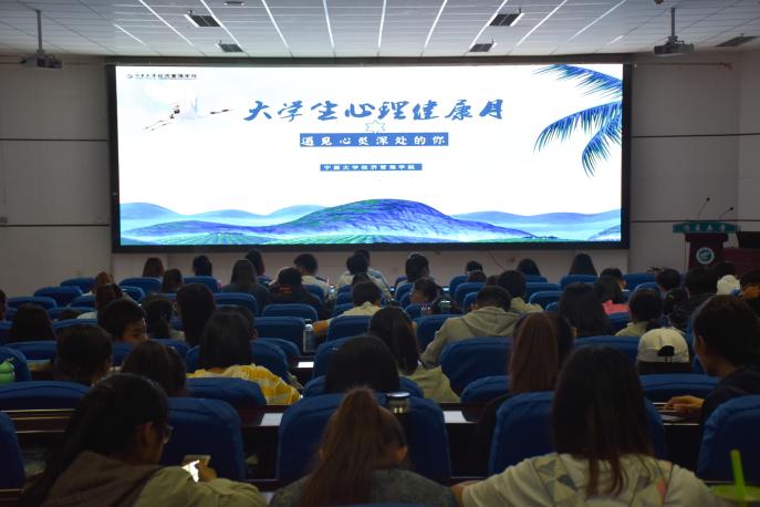 主办,院传媒中心和学生会文艺部承办的心理健康月开幕式顺利开展,学生工作办公室主任黄旭兴、15级辅导员刘洋老师和2017级全体学生到场参加。
