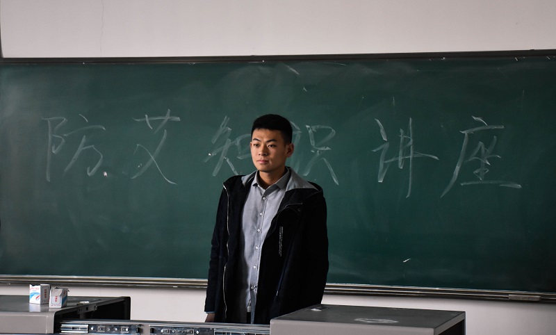 于贺兰山校区文荟楼一楼为2018级全体学生开展预防艾滋病知识讲座。