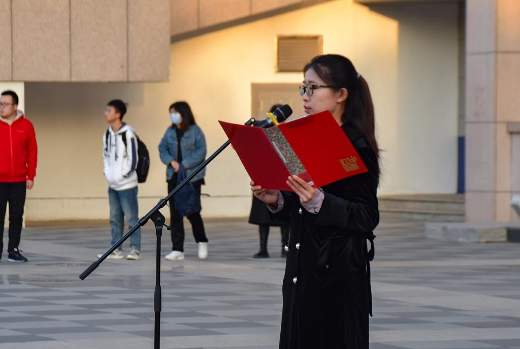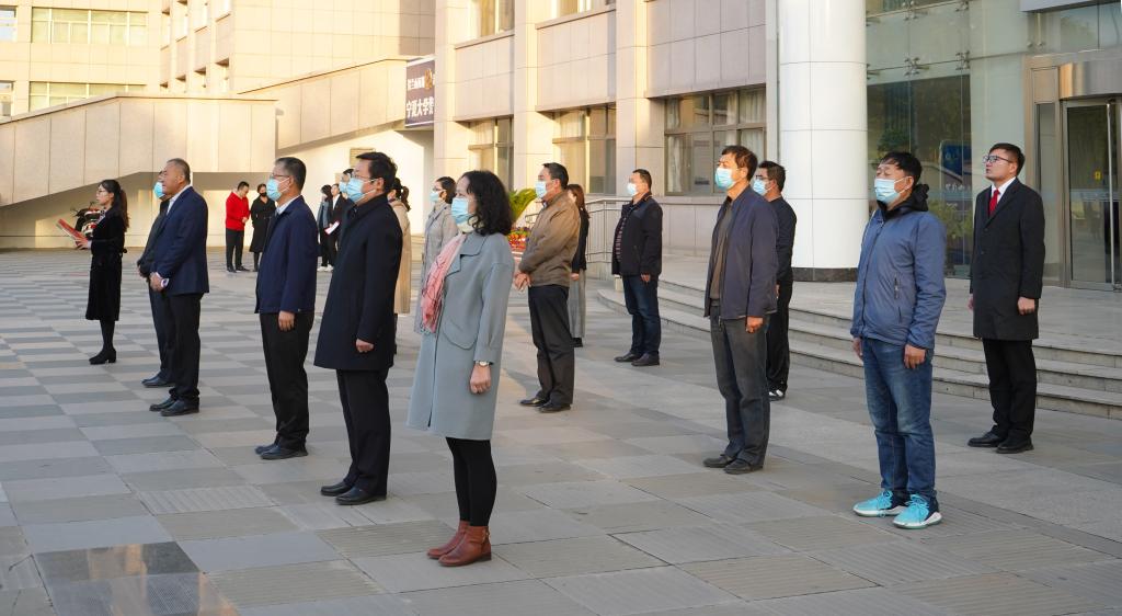 在贺兰山校区德勤楼前举行隆重的升国旗仪式。学院党委书记朱伟,院长杨国涛,西部发展研究中心主任、副院长黄立军,院党委副书记程胜利,副院长冯蛟、张逸,西部发展研究中心副主任王国庆、董小焕,学院各系办公室主任、专业负责人和教师代表及全体本科生、研究生参加了此次仪式。仪式由学生工作办公室负责人何韶华主持。
