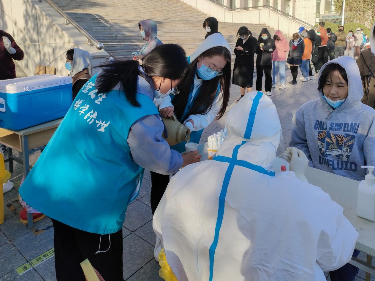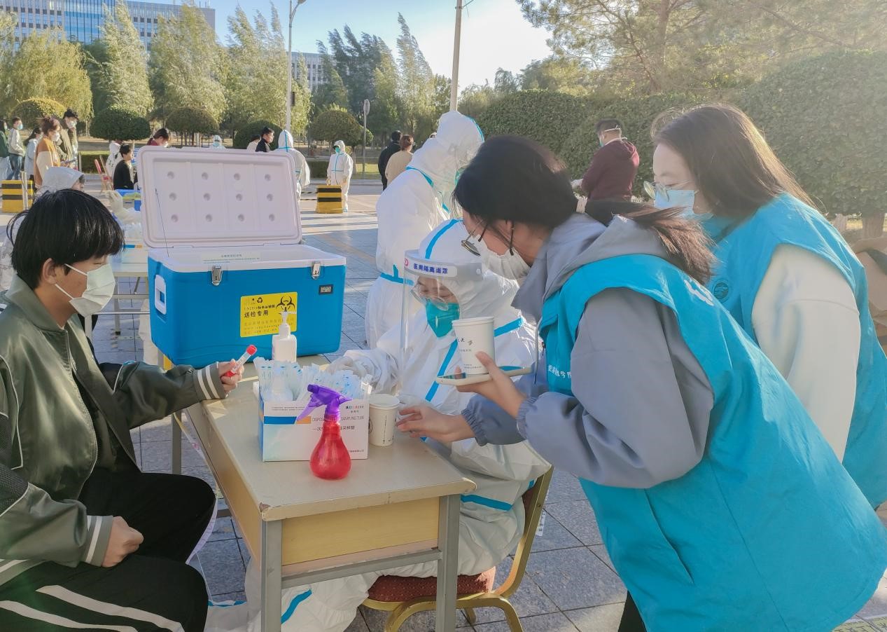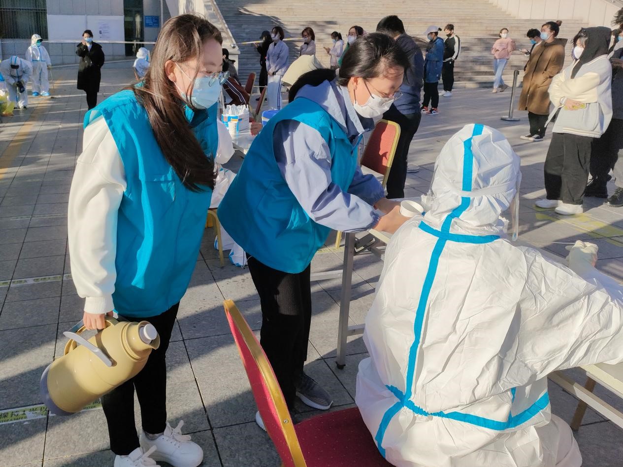 10月8日下午,欧美av 贺兰山校区开展了核酸检测工作,在学院团委的部署下,经管志愿者们为医护人员送热水,在寒风凛冽中彼此守望。