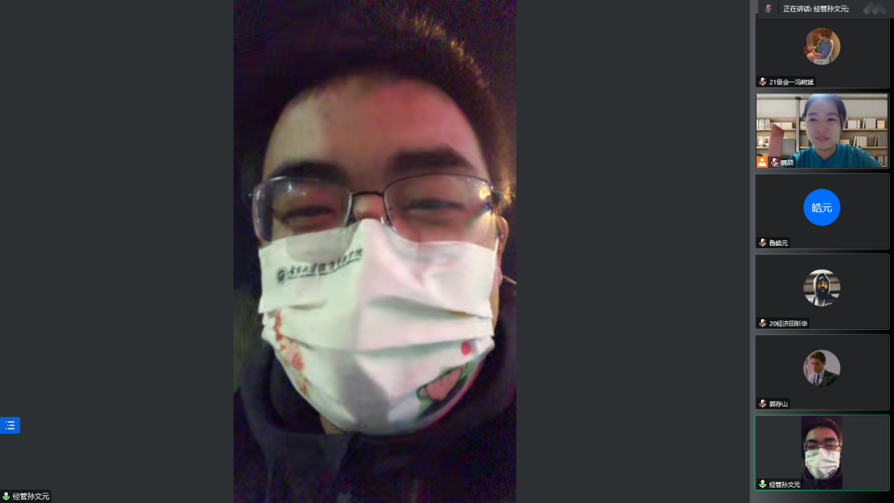会上,学生鲁皓元详细介绍了学院青年突击队的工作任务。姚硕表示学校会保证充足物资供应和基本生活需要,希望团学骨干和学生党员充分发挥作用,做到不信谣,不传谣。孙文元鼓励大家众志成城,共抗疫情。艾萨·阿尤普强调如今正处于疫情应急时期,学生干部应保持警惕,遵守纪律,积极沟通。