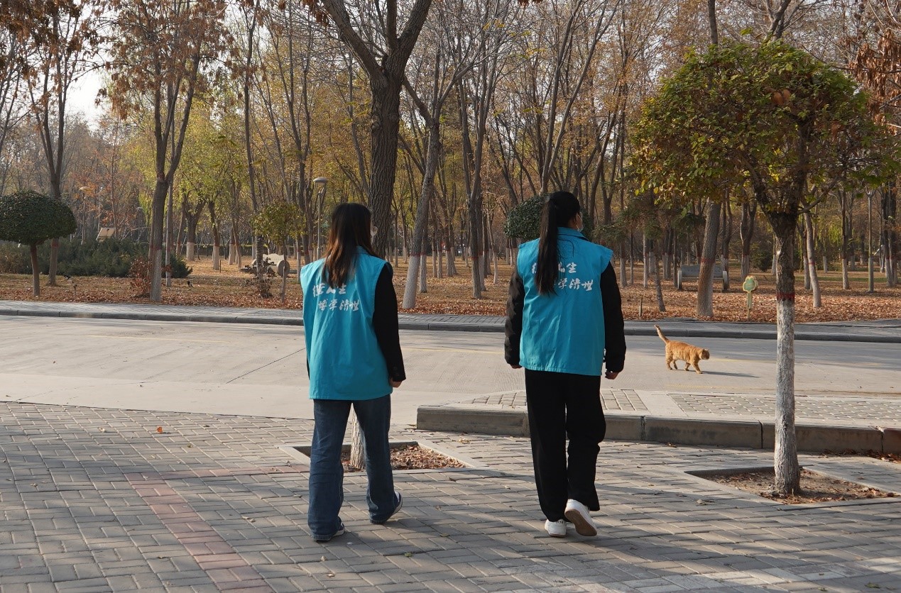 志愿者校园巡逻和值班活动在贺兰山校区北一区至北四区、东一区至东二区和南一区至南二区顺利开展。