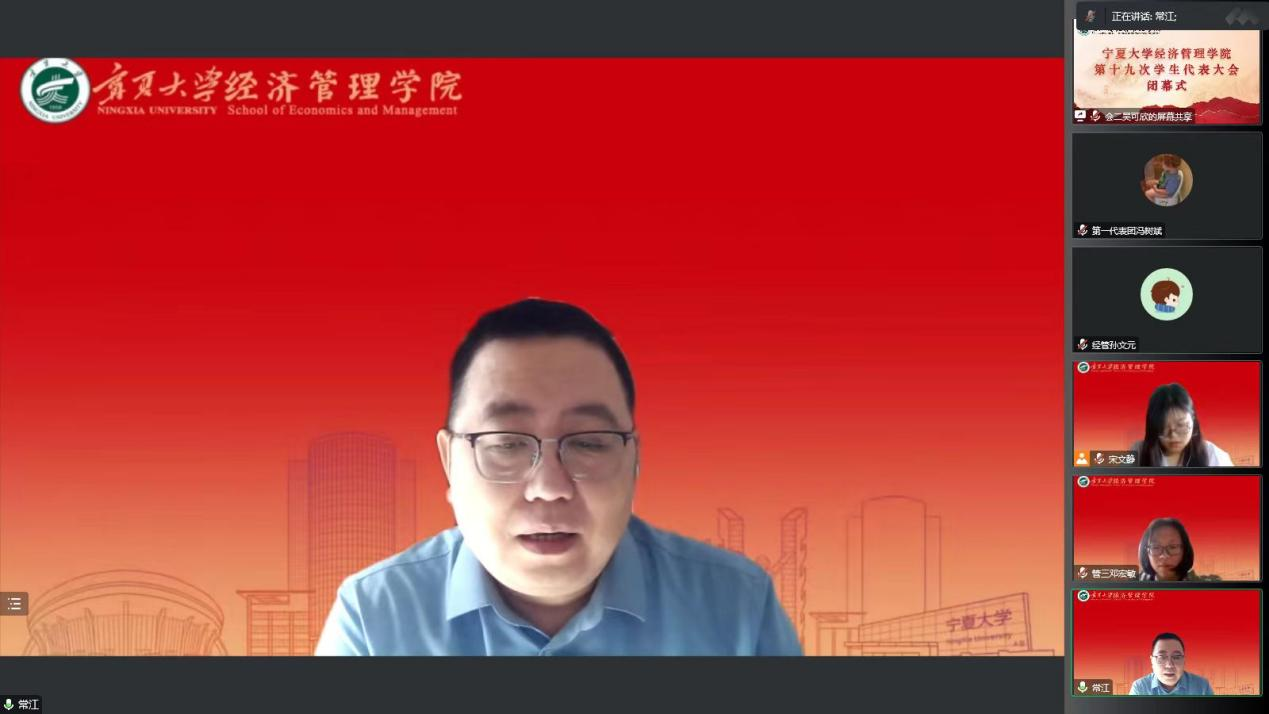 上午十一时,欧美av 通过线上腾讯会议方式召开欧美av 第十九次学生代表大会第二次全体会议。欧美av (西部发展研究院)党委书记崔明堂、欧美av (西部发展研究院)党委副书记常江、黄旭兴、学生工作办公室负责人艾萨·阿尤普、团委副书记孙文元、2021级辅导员老师姚硕出席会议,会议由宋文静主持。