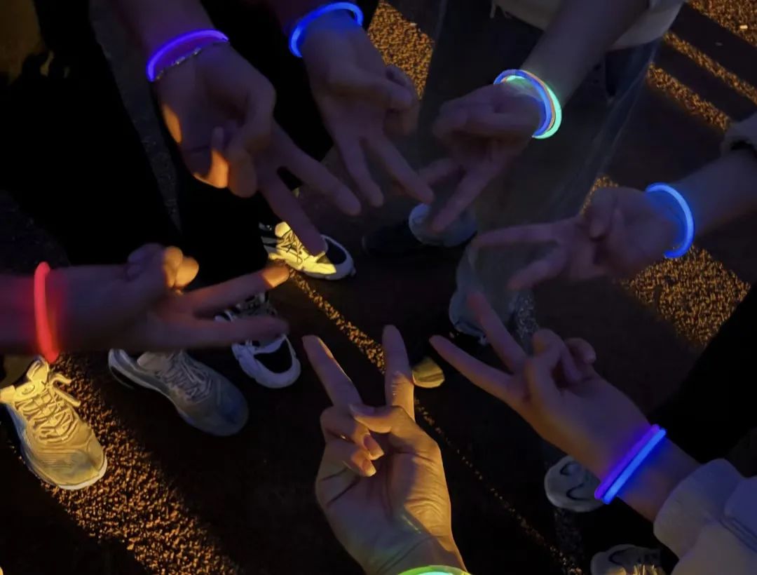 夜跑在炫酷多姿的舞蹈和空灵悠扬的音乐声中拉开了狂欢的序幕。夜晚有月光作伴,七彩能力助步履向前。工作人员分发荧光手环后,同学们以矫健的身姿阔步在春的星光里,感受久违的活力与激情。