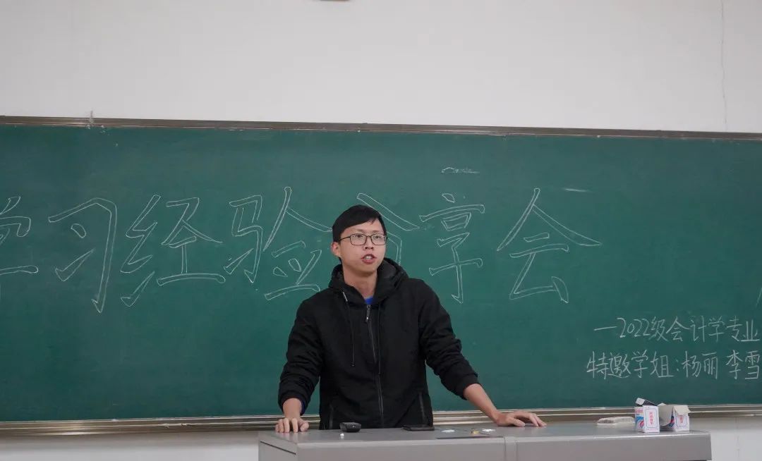 会计学班邀请到了2020级会计学班杨丽、李雪和林昆。杨丽讲述了考取证书的相关事宜,表示考证书一定要立足未来规划,切忌盲目备考。李雪表示针对重要的科目要及时总结并绘制思维导图,加深对知识的理解。林昆阐述了英语学习的重要性,重点说明了背诵单词和学习语法对于提升英语水平的重要作用。
