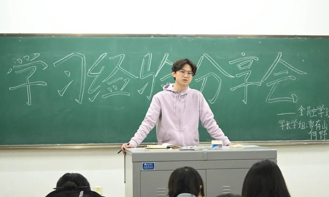 金融班邀请到了2020级金融班郭存山和何野。郭存山向同学们提出要积极向党组织靠拢,端正思想作风,为社会主义现代化建设贡献青年力量。何野结合自身学习经历向同学们分享了高效安排时间的方法,阐明了效率的重要性。