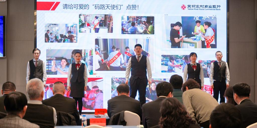 黄河农村商业银行码路天使队从科技带路、网络营销、应用场景三个方面全面阐述了深抓扫码支付市场的手段,并结合风趣的快板表演揭示了“小码牌撬动大市场”的奥秘。