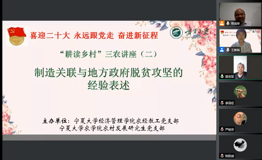 农林经济管理系主任东梅,农经教工党员及研究生、本科生参加了线上学术活动。讲座由农经教工党支部组织委员王琳瑛主持。