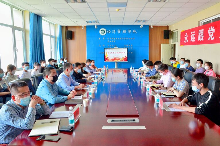 (西部发展研究院)院长杨国涛,学院党委副书记马建宏、常江,学院副院长张逸、仇娟东,学院青年教师代表郭飞、艾萨·阿尤普、禹文杰以及学院研究生、本科生代表参加了此次会议,会议由常江主持。