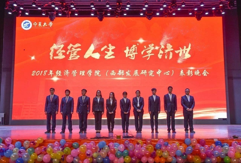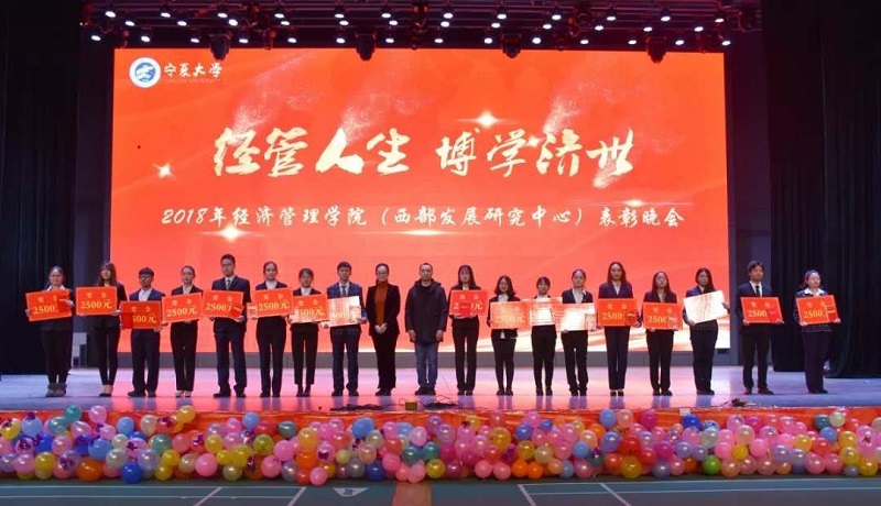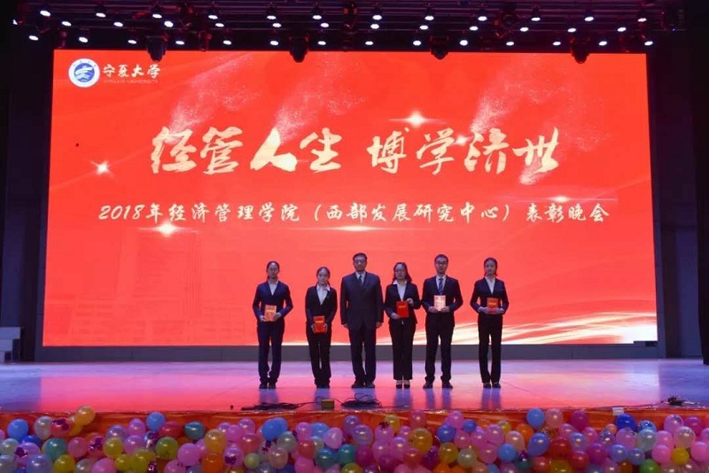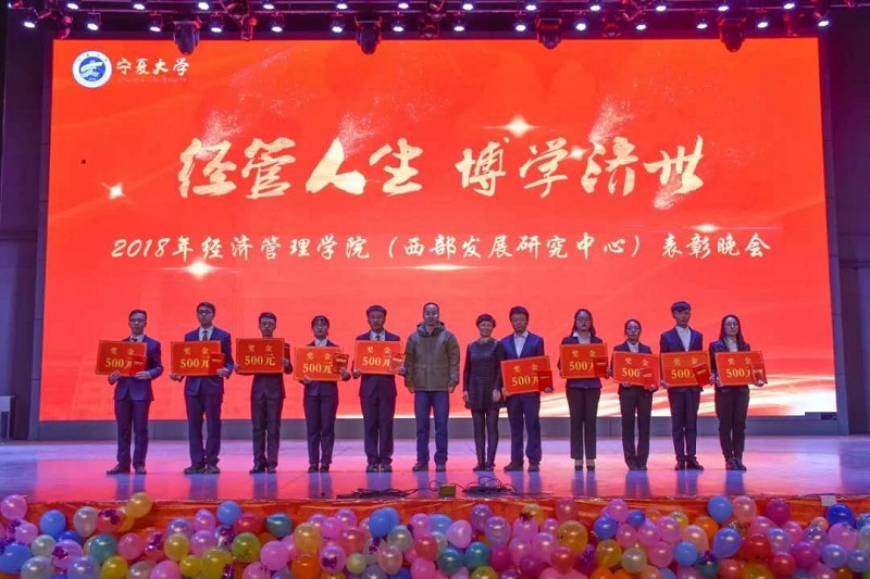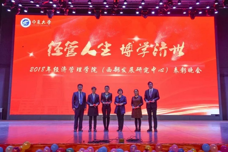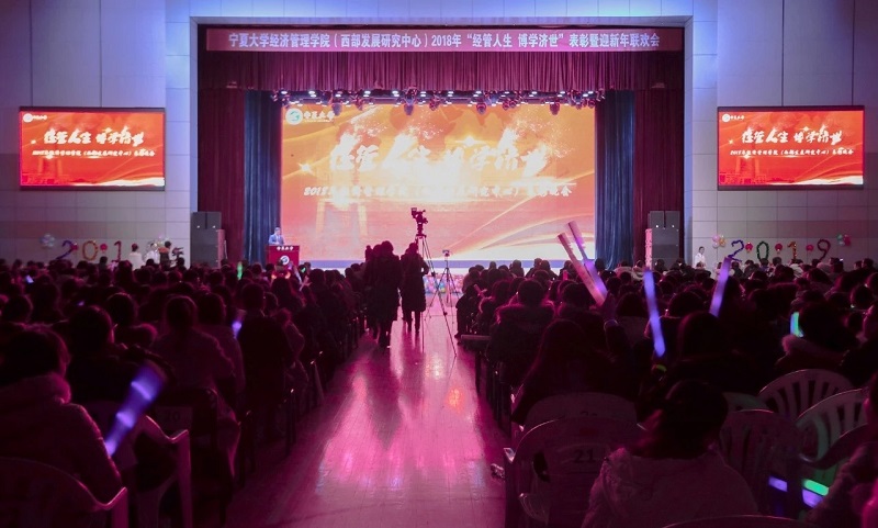 (西部发展研究中心)2018年“经管人生,博学济世”表彰暨迎新年联欢会在文萃校区大学生活动中心隆重举办。特邀嘉宾宁夏康百行销公司市场处主管王宁、银川营业部部长周建军,贵州茅台酒宁夏经销商联谊会代表、银川新华百货连锁超市有限公司总经理周志红、贵州茅台宁夏回族自治区代表张仕飞,欧美av