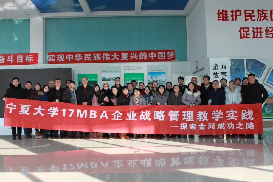 副院长黄立军带领2017级MBA学员,前往宁夏金河科技股份有限公司开展企业调研实践活动,此次调研活动主要针对MBA《企业战略管理》课程中企业如何实现战略管理开展现场调研,结合课堂教学内容和现场实践反馈,达到教学与实践二合一的双赢。