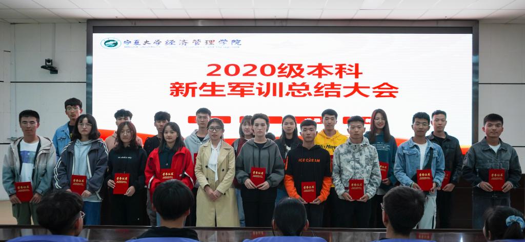 于贺兰山校区文荟楼东报告厅举行2020级本科新生军训总结大会,学院党委副书记程胜利、学生工作办公室负责人何韶华、学生工作办公室辅导员艾萨、姚硕、孙文元、2020级班主任助理及全体新生到场参加。会议由孙文元主持。