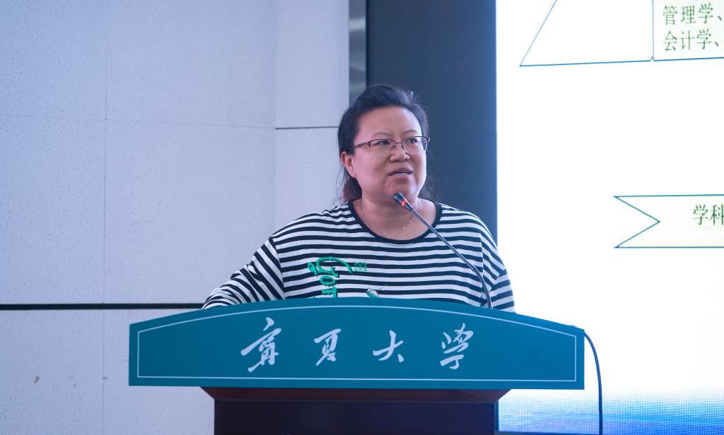 杨彩玲对工商管理系、工商管理大类所属专业及工商管理专业进行介绍。她分别从师资情况、培养目标、毕业要求、课程体系、学分学时、就业情况几个方面对工商管理系专业进行了全面的讲解。
